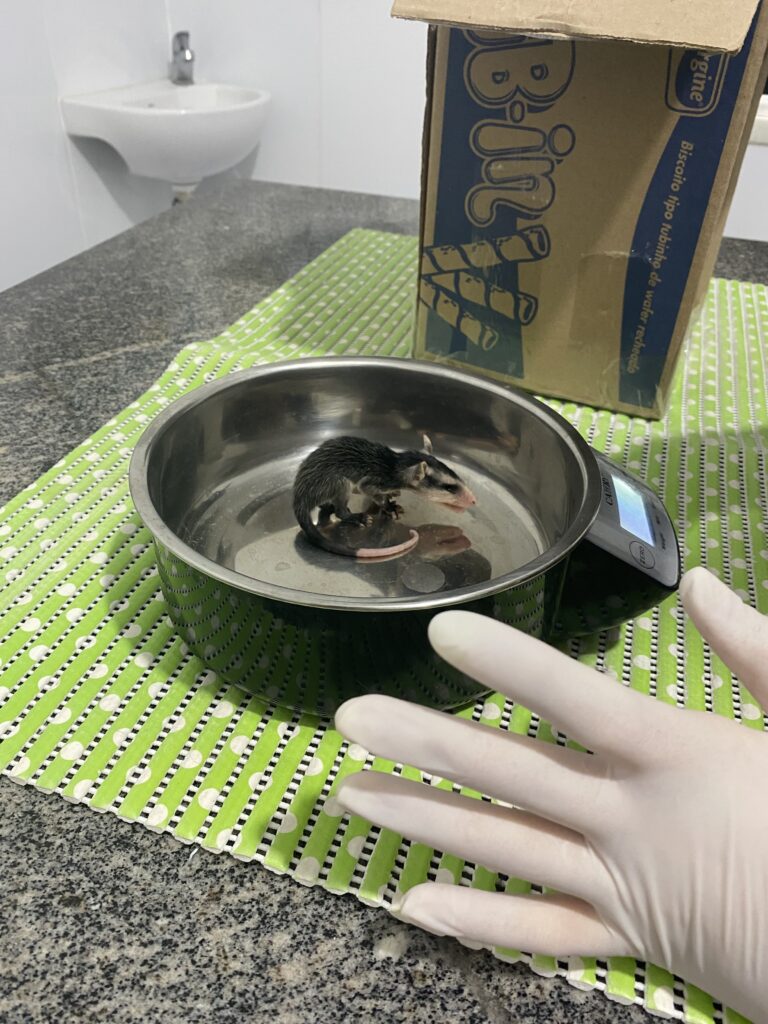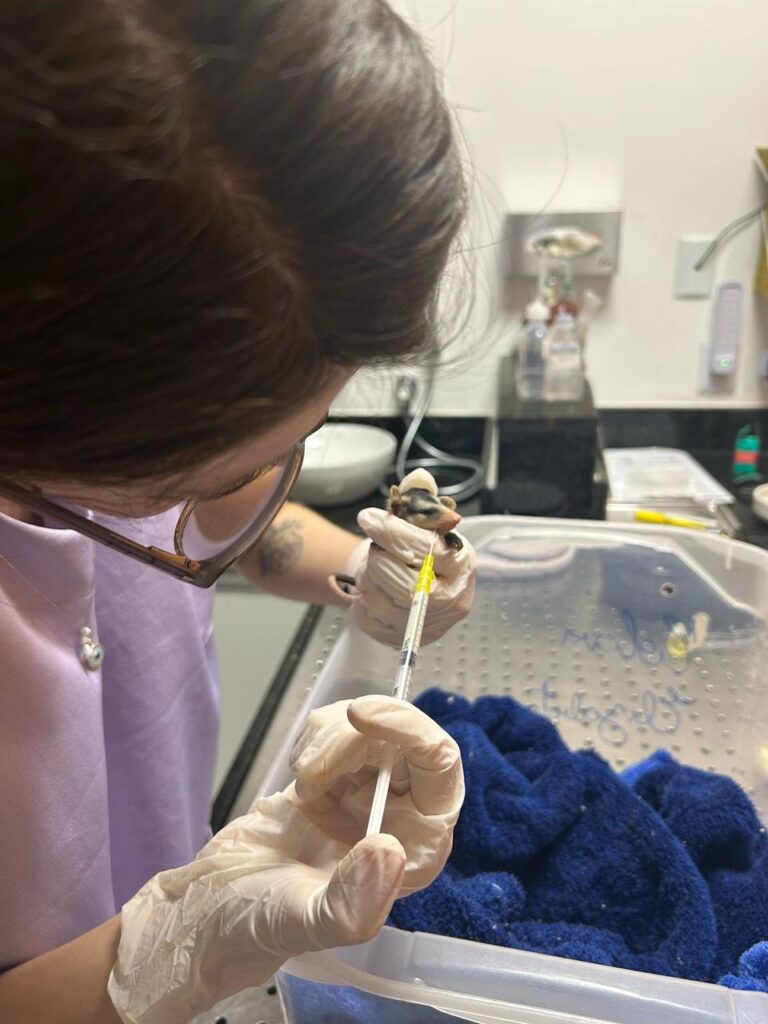 Até que, finalmente, encontramos uma que os atenderia. Ufa! Na consulta, os saruezinhos foram avaliados com cuidado, pesados e tiveram retiradas as larvas de moscas que já estavam depositadas nos seus frágeis corpinhos. Eles ficariam acolhidos ali até a manhã seguinte, quando acionaríamos a equipe de resgate do Cetas (Centros de Triagem de Animais Silvestres, unidades ligadas ao Ibama, responsáveis por receber, reabilitar e devolver à natureza animais silvestres que foram apreendidos, resgatados ou entregues voluntariamente pela população).