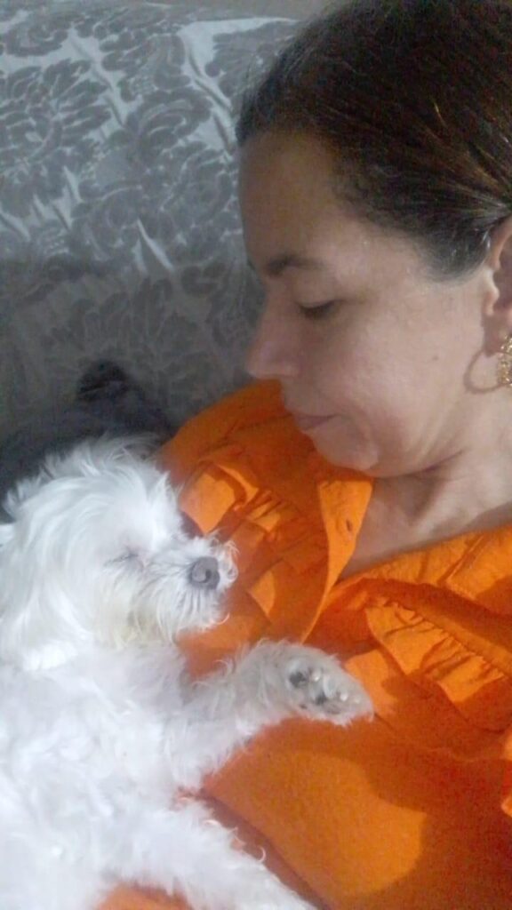 Cláudia ficou encantada. Logo ela, que nunca havia tido um animal de estimação antes e, pior, tinha medo de cachorro – Pode isso?, ela mesma se surpreende. Mas aquela bolinha de algodão conseguiu derrubar essa barreira e conquistou o coração de sua tutora. (E quem melhor do que um cachorro para amolecer corações, não é mesmo?)