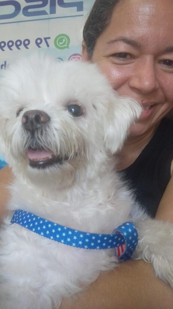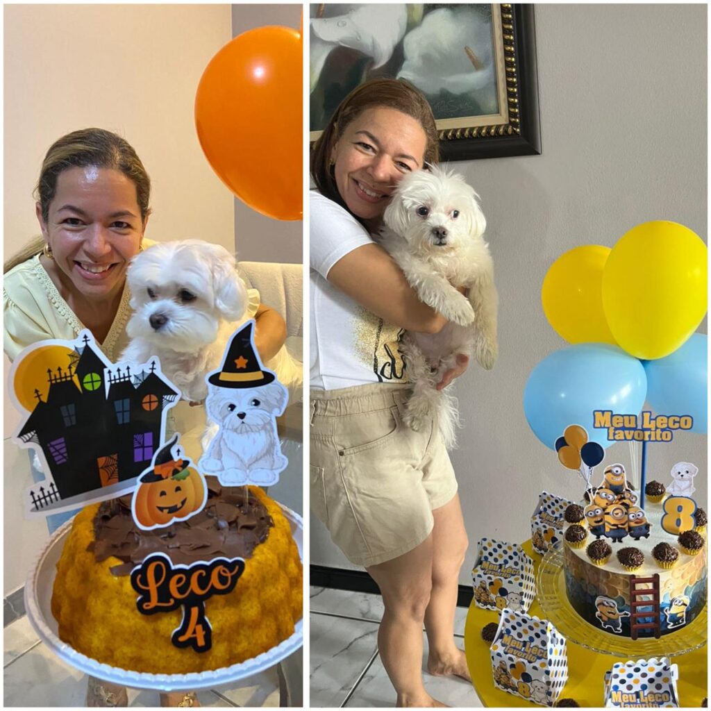 Bem, em meados de 2017 – quando ainda nem nos conhecíamos -, ao mudar de residência, o filho de Cláudia, Fellipe, passou a pedir um cachorro. No começo, o marido Flávio não quis, mas acabou cedendo. Depois de algumas pesquisas, a família soube de uma moça que estava vendendo filhotes de maltês. Chegando no local, Cláudia segurou uma fêmea nos braços, e Fellipe, um macho. Pensaram, pensaram e acabaram escolhendo o machinho, aquele que seria Leco.